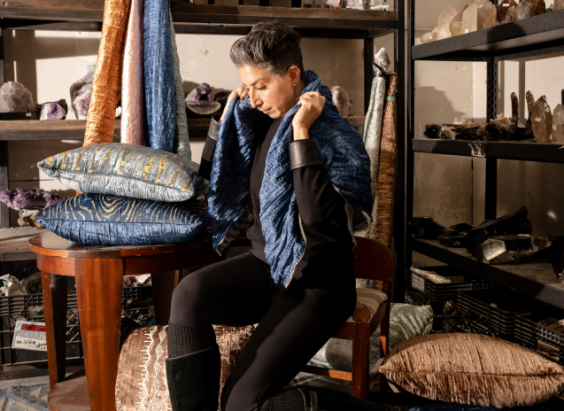 For more than two decades, Aviva Stanoff Design has garnered acclaim from industry experts, receiving numerous prestigious awards. Her groundbreaking contributions to the textile design realm have earned her a permanent place in the Decorative Arts Collection at the Brooklyn Museum. Her career started on the runway - where she created textiles for high end fashion designers in both ready to wear and couture. Her work regularly appeared on red carpets, fashion shows, and in the press. Noted as a Best Bet by the New York Times and recipient of multiple Arts Awards, Aviva has a design studio where everything is made in Southern California and licensing partners across multiple categories.