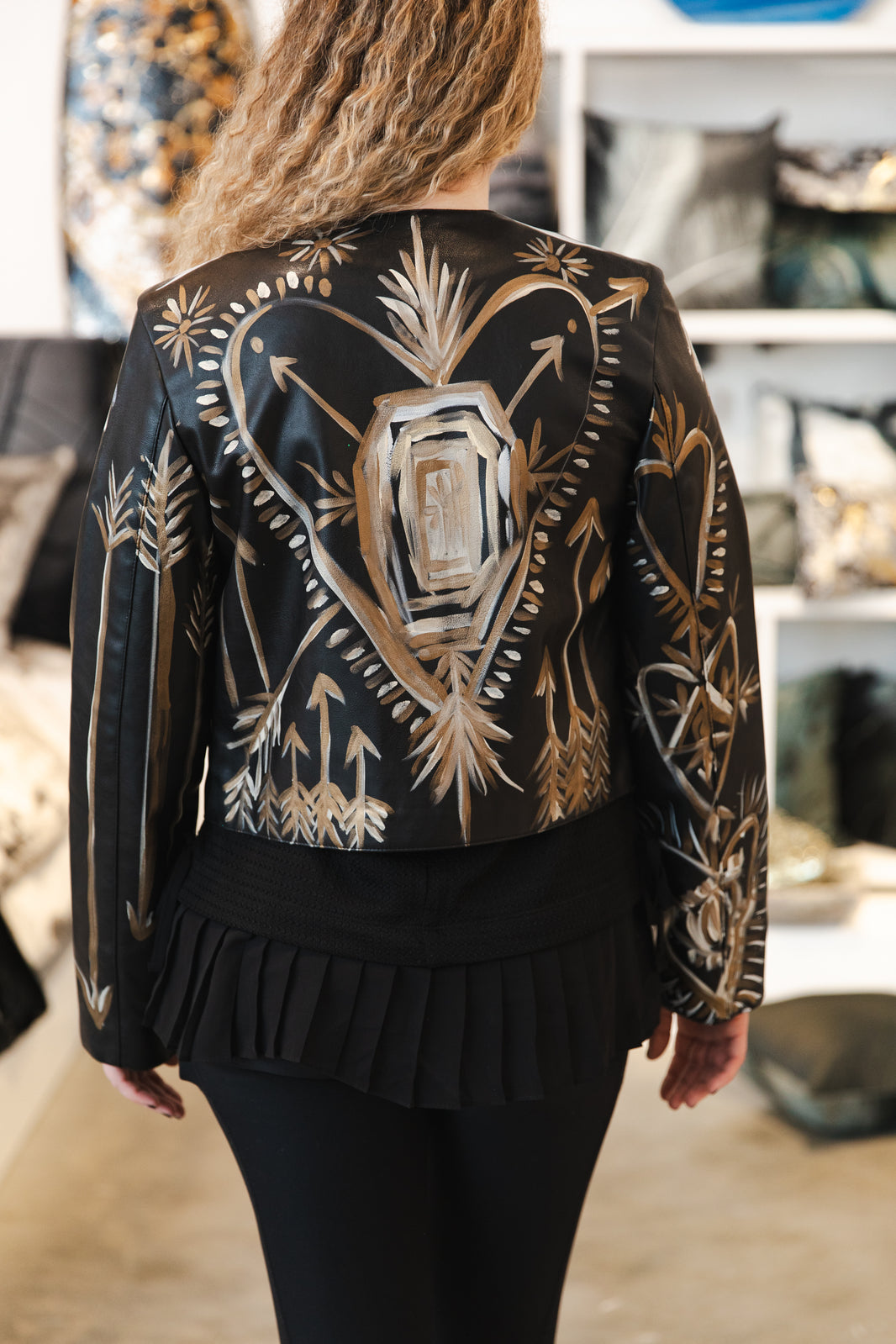 The Cali Couture Collection is a glimpse into Aviva’s love of fashion, crystals, and reverence for our planet. Repurposed used surfboards, skateboards, skis, guitars, vegan and natural Leather apparel, and accessories are her canvases. Painting is her passion and quite frankly, nothing is safe from her brushes and creativity. Join us in our quest to not only make beautiful one-of-a-kind items but also be part of an initiative to be sustainable.This collection is a manifestation of Aviva’s many years of curating, innovating surfaces, and celebrating the exquisite in the world. Mother Nature has been by her side with every step. “When I am painting, time stops and I am free to be my truest self. It is with gratitude that I found a tiny corner of the world where my designs and art serve as a way to connect with others. This connection requires no translation and knows no borders of geography, language, ethnicity, nor all those things that divide us. It is through art we have common ground. Custom commissions are available.