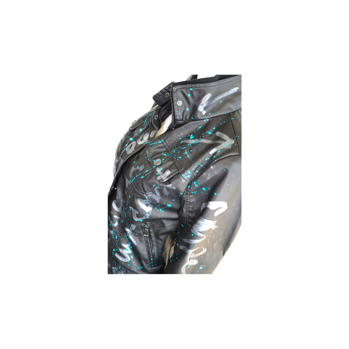 The Cali Couture Collection is a glimpse into Aviva’s love of fashion, crystals, and reverence for our planet. Vegan and natural Leather apparel, and accessories are her canvases. Painting is her passion and quite frankly, nothing is safe from her brushes and creativity. Join us in our quest to not only make beautiful one-of-a-kind items but also be part of an initiative to be sustainable. This collection is a manifestation of Aviva’s many years of curating, innovating surfaces, and celebrating the exquisite in the world. Mother Nature has been by her side with every step. “When I am painting, time stops and I am free to be my truest self. It is with gratitude that i found a tiny corner of the world where my designs and art serve as a way to connect with others. This connection requires no translation and knows no borders of geography, language, ethnicity, nor all those things that divide us. It is through art we have common ground. Custom commissions are available. Please inquire within. We hope you enjoy the Jacket!