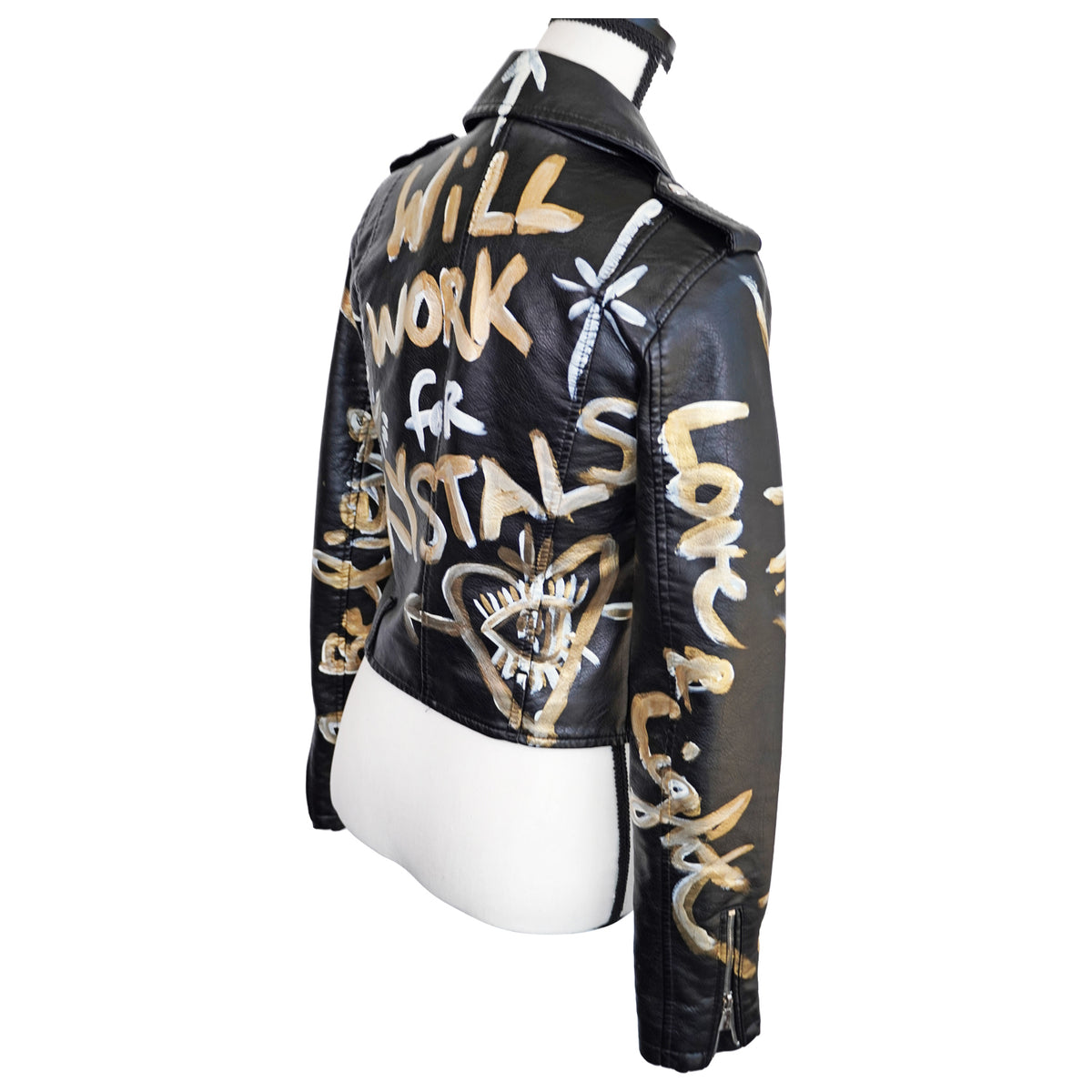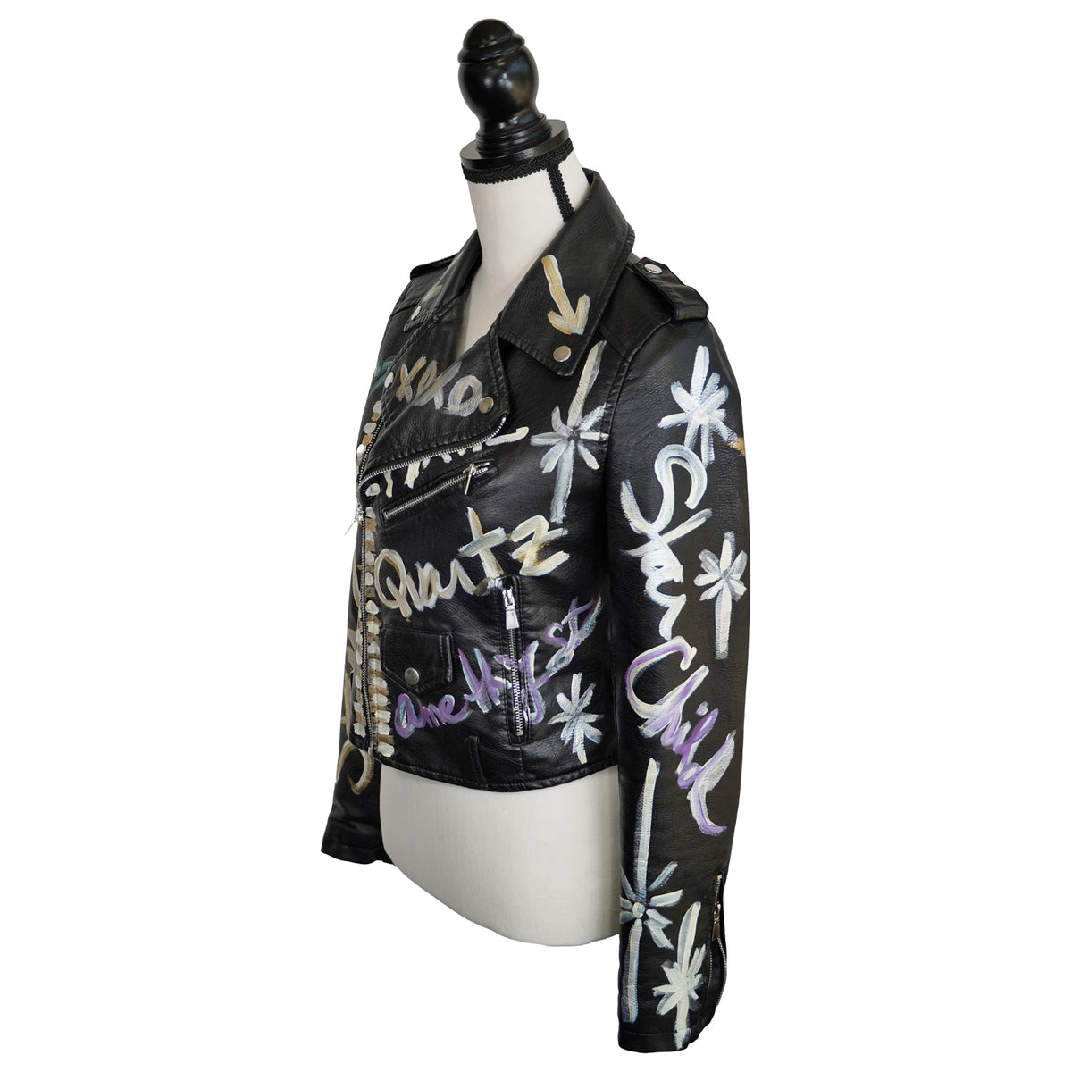 The Cali Couture Collection is a glimpse into Aviva’s love of fashion, crystals, and reverence for our planet. Vegan and natural leather apparel, and accessories are her canvases. Painting is her passion and quite frankly, nothing is safe from her brushes and creativity. Join us in our quest to not only make beautiful one-of-a-kind items but also be part of an initiative to be sustainable. This collection is a manifestation of Aviva’s many years of curating, innovating surfaces, and celebrating the exquisite in the world. Mother Nature has been by her side with every step. “When I am painting, time stops and I am free to be my truest self. It is with gratitude that I found a tiny corner of the world where my designs and art serve as a way to connect with others. This connection requires no translation and knows no borders of geography, language, ethnicity, nor all those things that divide us. It is through art we have common ground." Custom commissions are available. Please inquire within. :-)