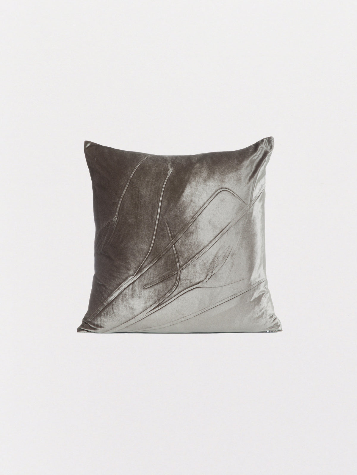 A thoughtful addition to any room, this Signature Velvet piece is hand made in San Diego. Created by pressing natural elements into fabric one at a time, each pillow is born with its own engraved impression and no two ever alike.